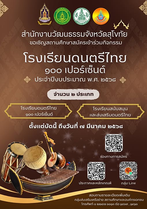 เพื่อเข้าร่วมรับการคัดเลือกกิจกรรมโรงเรียนดนตรีไทย 100 เปอร์เซ็นต์ ประจำปีงบประมาณ พ.ศ. 2569
